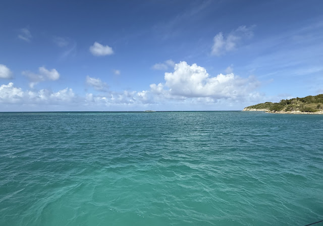 Barbuda is a small island only 125 feet above sea level at its highest point, so you don't see the island at all until you are 5 or 6 miles away. It is also surrounded by treacherous reefs, so we were paying close attention to Navionics and the GPS chart plotter as we approached.